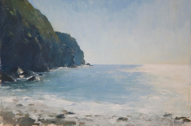 This is one of the beaches in Riomaggiore, as you turni left by the harbour its only access is a narrow pathway carved out of rock which brings you to a hot and stony beach. Both an uncomfortable painting and sunbathing spot i suppose you have to suffer if you need a suntan or a painting! Painted out of season in November there were less tourists but still the sun was quite hot.