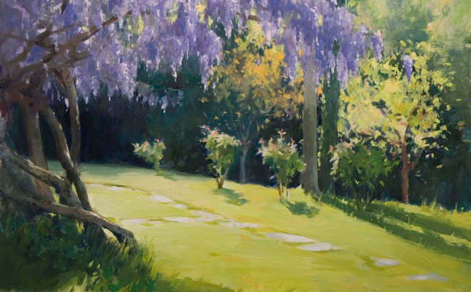 Wisteria. Oil on board, 26cm x 42cm