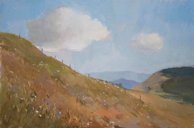 At the Top of the Hill. 20cm x 30cm, oil on board.