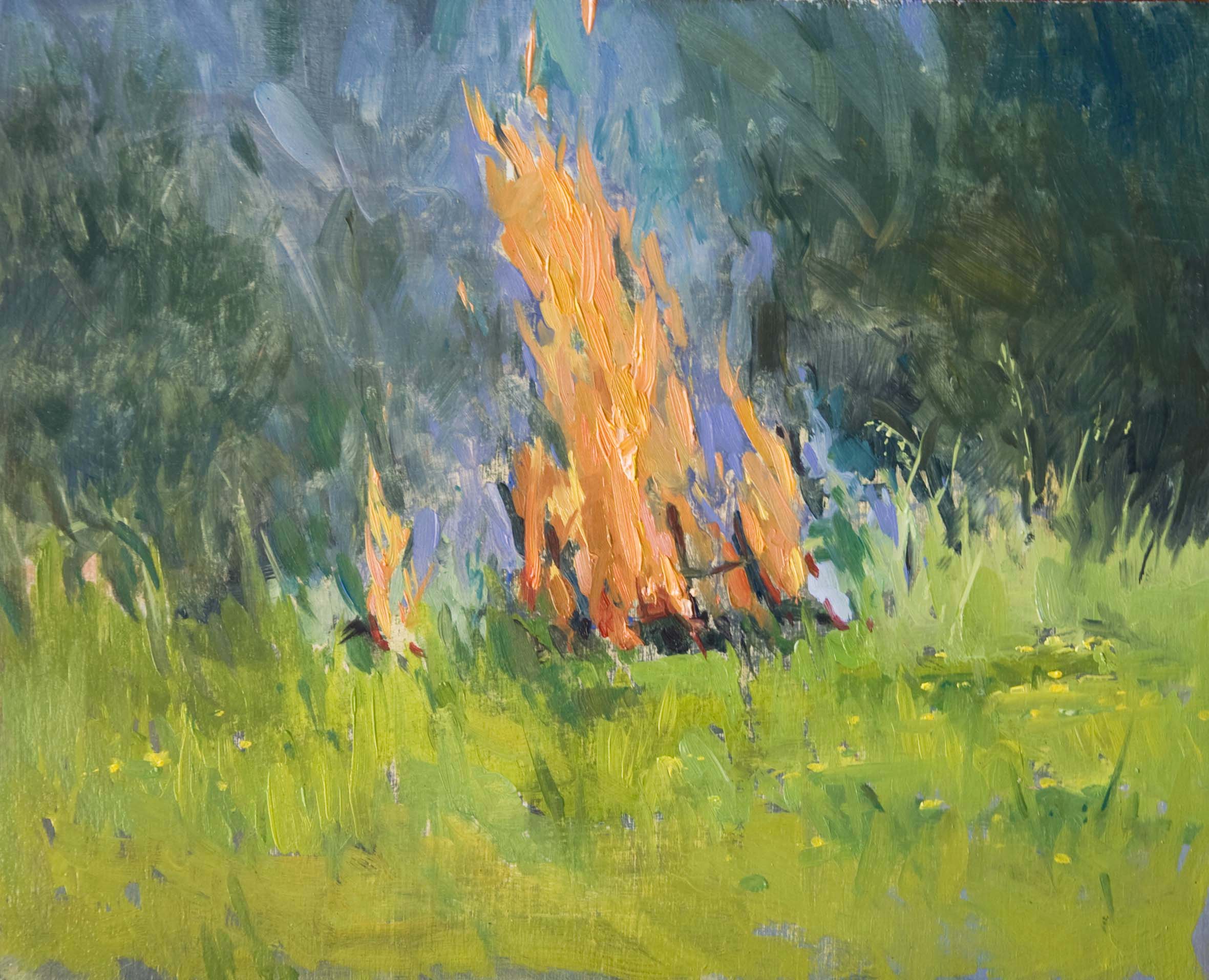 Catching Fire. Oil on Board, 25cm x 30cmSpinach. 15cm x 20cm, oil on board.